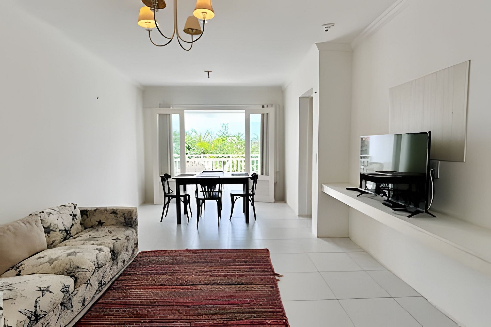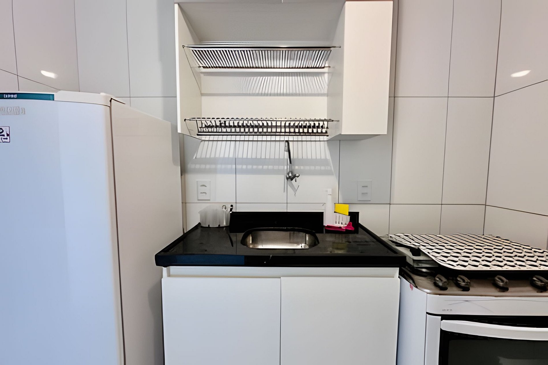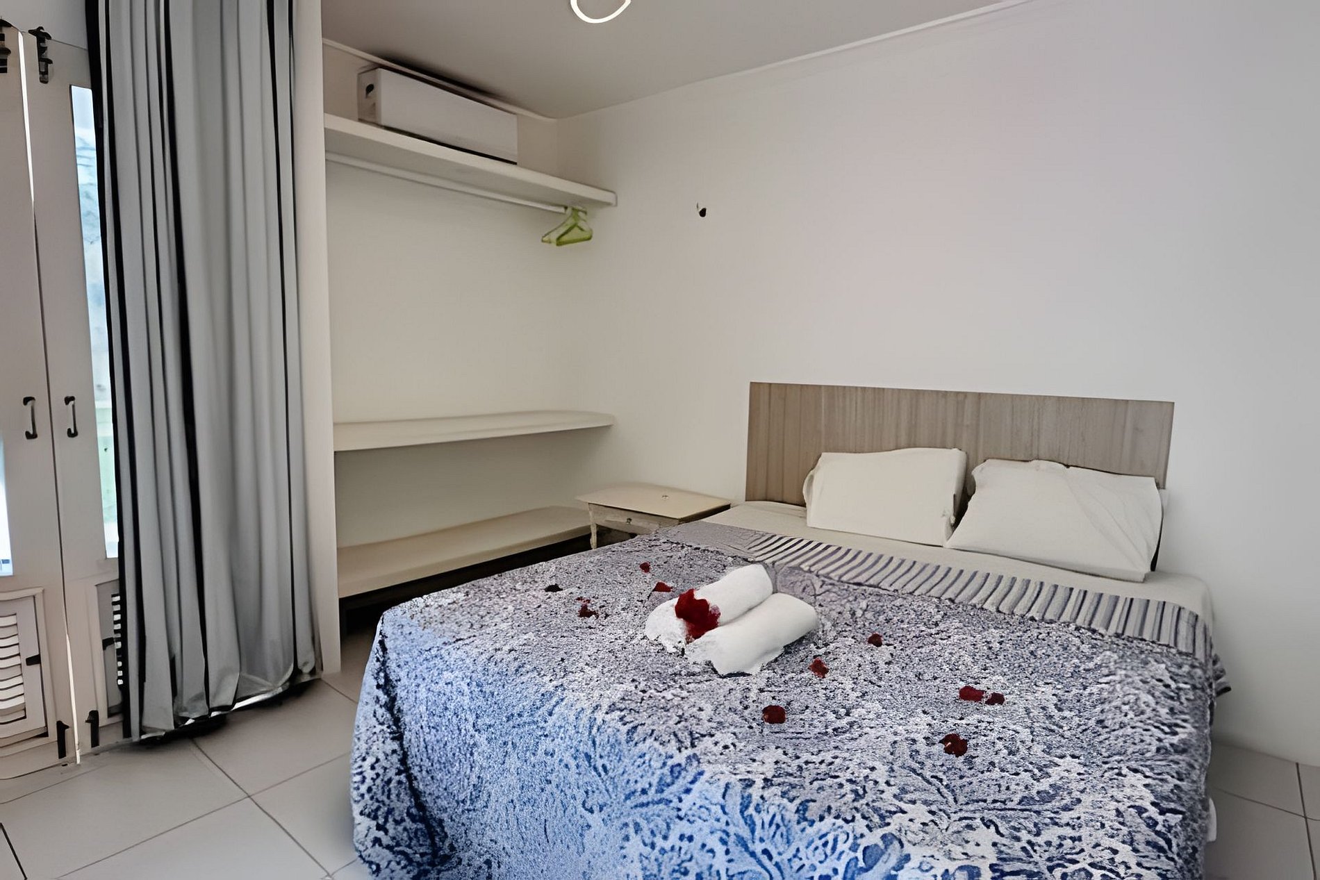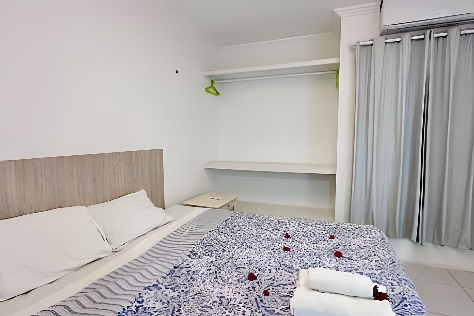 O apartamento é novo e muito espaçoso, com 80 m², especialmente quando você abre as amplas portas que conectam a sala de estar e varanda para um espaço aberto. Nele têm duas suítes, quartos espaçosos e confortáveis, ambos com banheiro próprio e estão equipados com ar-condicionado, se você preferir temperaturas mais baixas durante a noite. A cozinha está equipada com geladeira e fogão.