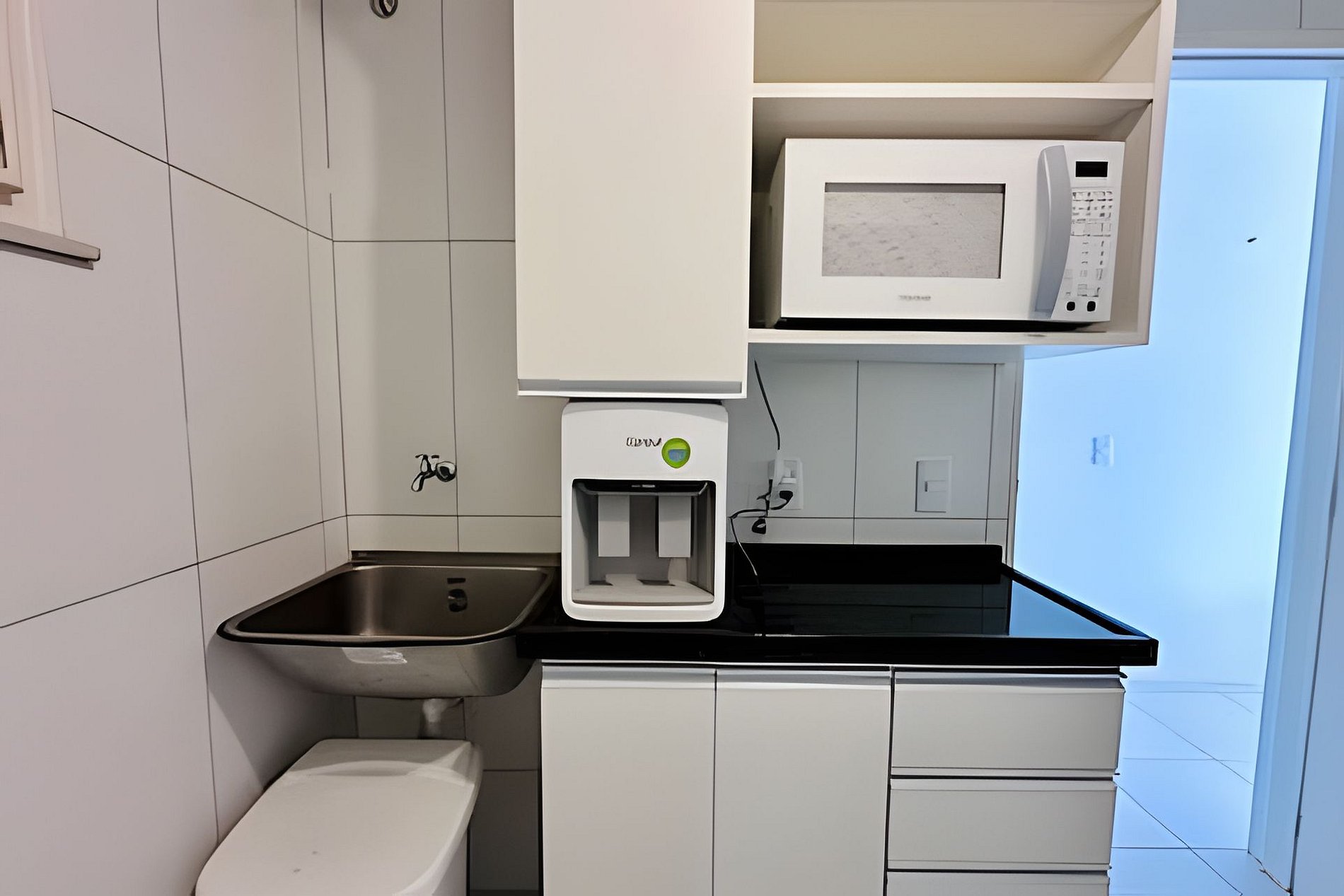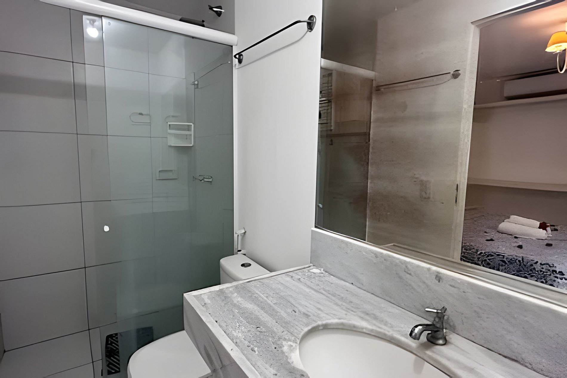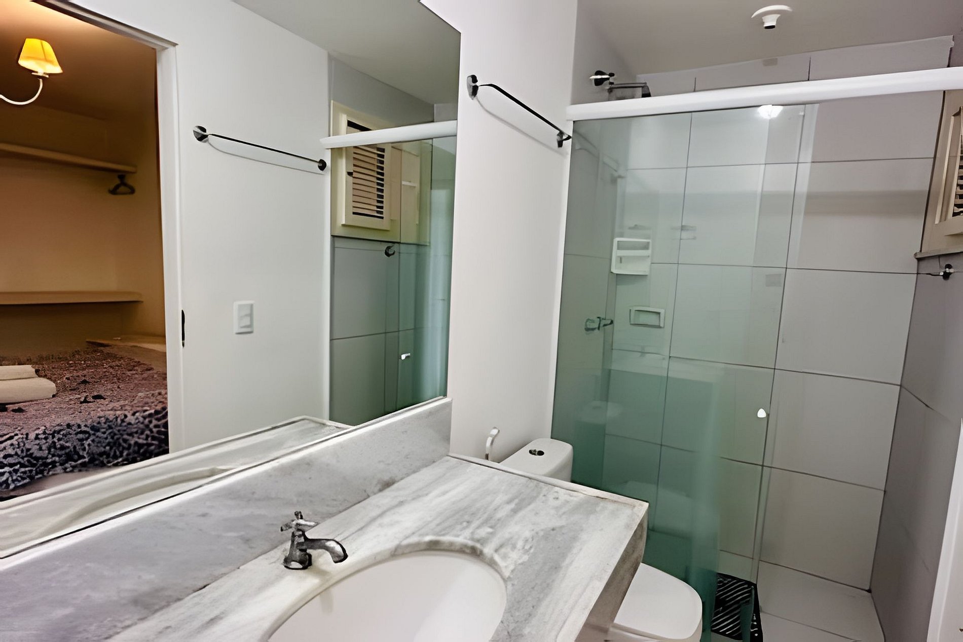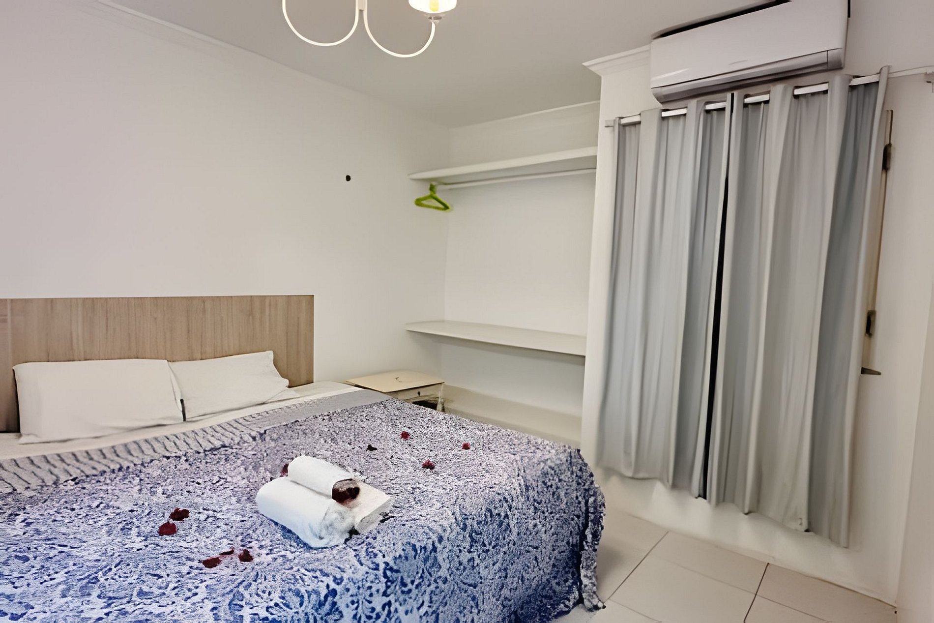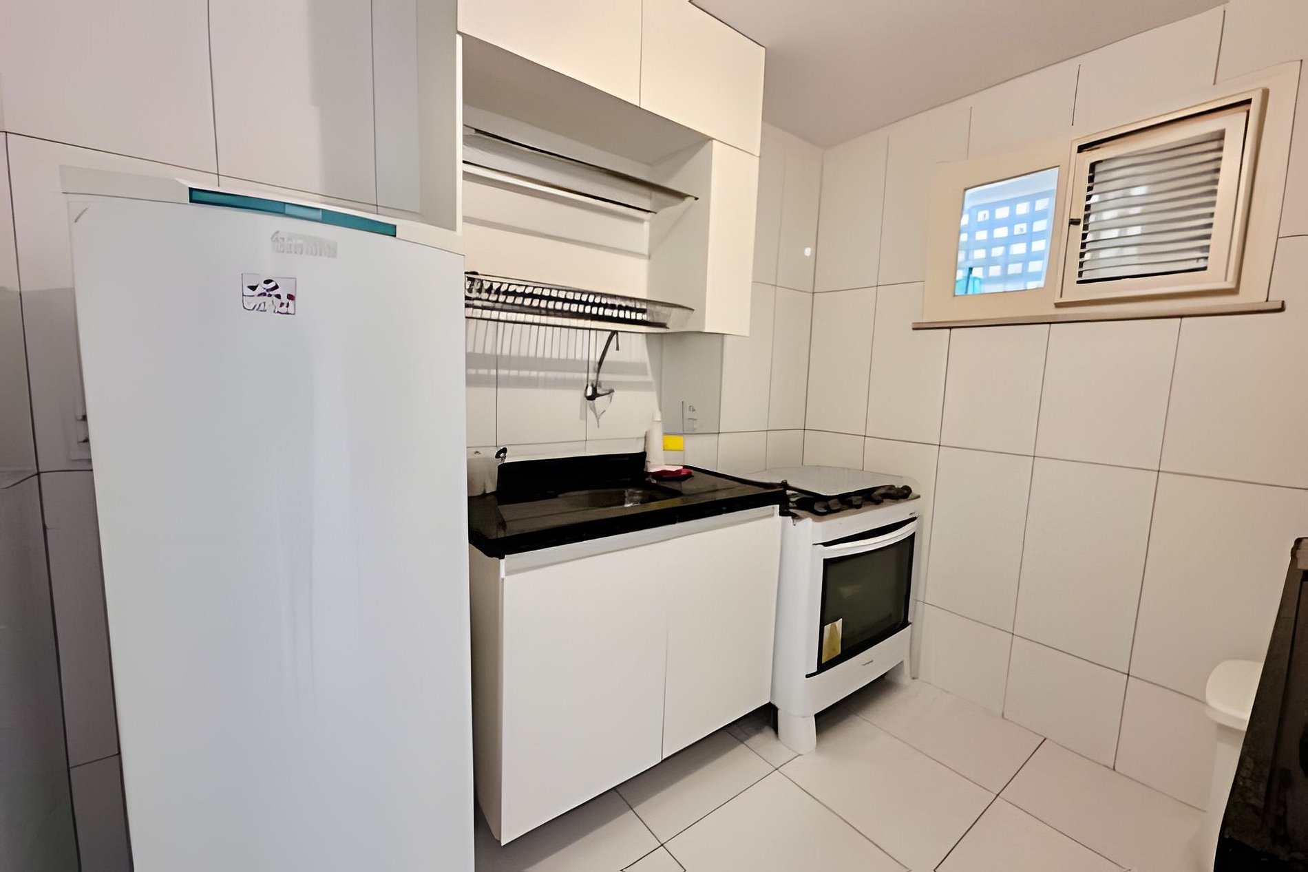 O apartamento é novo e muito espaçoso, com 80 m², especialmente quando você abre as amplas portas que conectam a sala de estar e varanda para um espaço aberto. Nele têm duas suítes, quartos espaçosos e confortáveis, ambos com banheiro próprio e estão equipados com ar-condicionado, se você preferir temperaturas mais baixas durante a noite. A cozinha está equipada com geladeira e fogão.